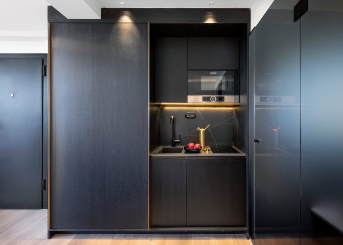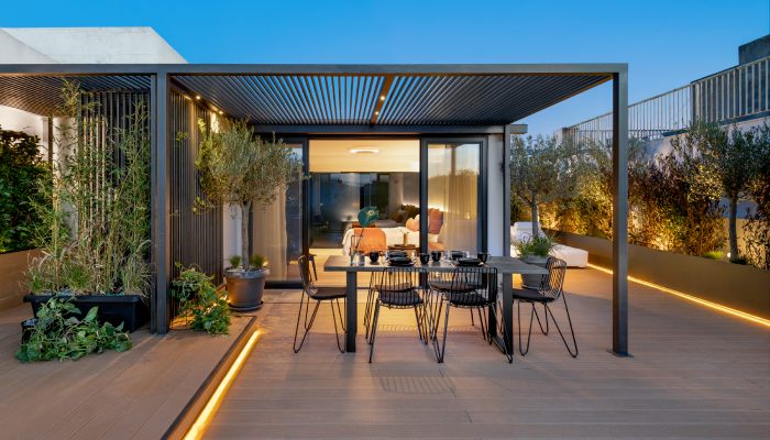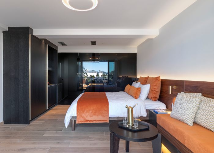 Day and night are different experiences while you enjoy the carefully designed private terrace with premium modern outdoor furniture. The individually controlled private jacuzzi is set for our guests to unwind and relax while they enjoy the great views over Athens. The modern and comfortable open-air sitting area is setting the stage for a wonderful and memorable stay experience. The Penthouse apartment with private jacuzzi and balcony features one bedroom with a queen size bed and accommodates up to two guests with a total surface of approximately 124 m².