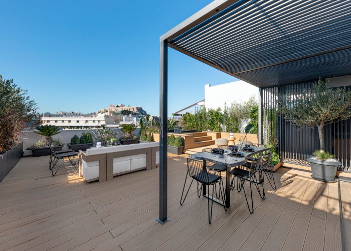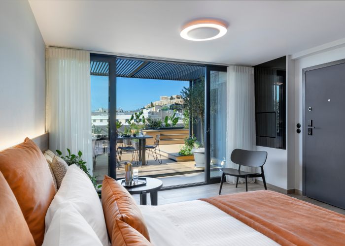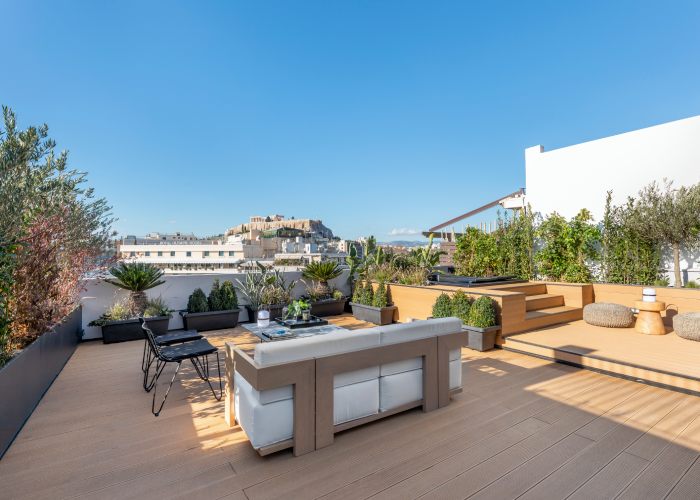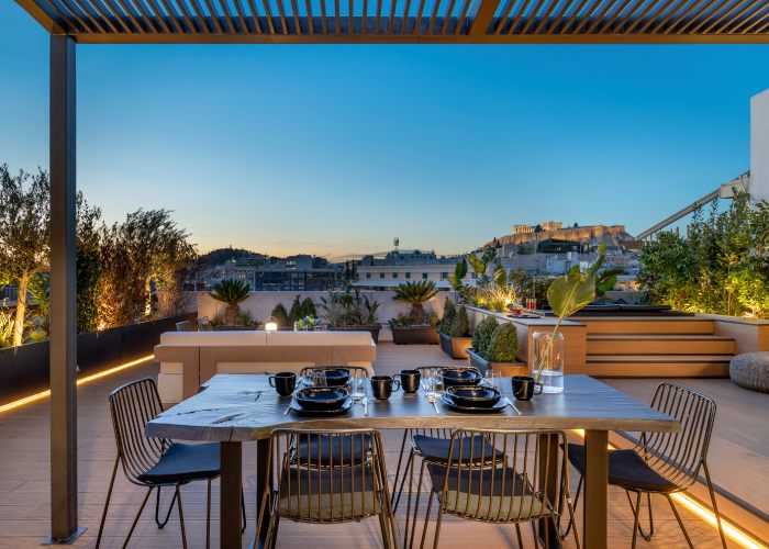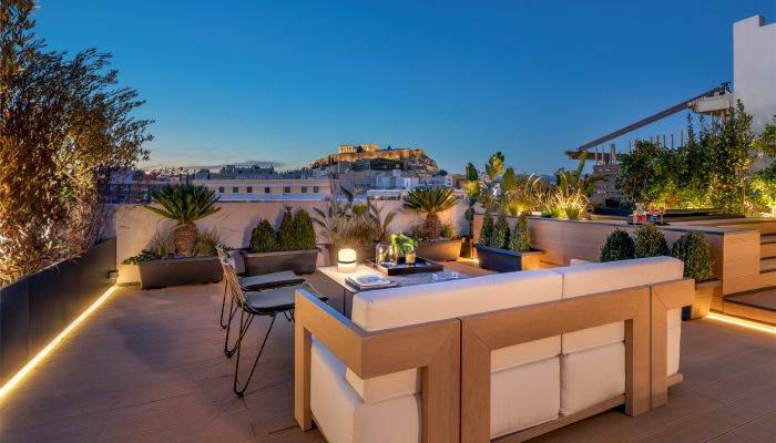 The ultimate luxury stay experience is offered by our Penthouse apartment 24sqm and 110sqm veranda, with breathtaking views over Acropolis Hill and the vibrant city of Athens.
