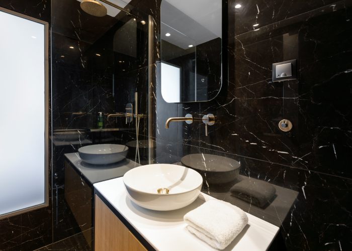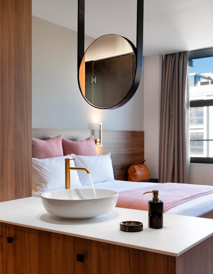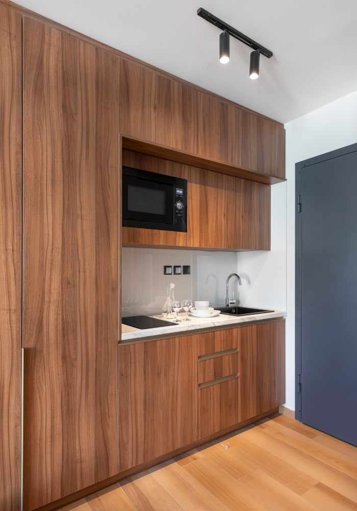 Combining wooden and earthy tones, this elegant suite creates a warm welcoming atmosphere for everyone to enjoy. Covering 35 square meters of pure comfort, this stylish suite features a comfortable queen size bed, an ergonomic kitchenette and a beautifully designed private bathroom with walk-in shower, where 2 adults and a child can be accomodated.